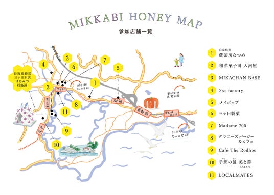 10月3日(金)~11月30日(日)の期間中、三ヶ日町内にあるカフェとスイーツ店、合わせて11店舗で、三ヶ日町で採れた「三ヶ日の里山蜂蜜 」もしくは、料理に使いやすい「三代目の蜂蜜」を使ったメニューを楽しんでいただき、店舗巡りしていただく企画です。ハチとミツのおいしい休日」は過去3回浜松市中央区で行いましたが、第4弾となる今回は初めて三ヶ日町で開催します。