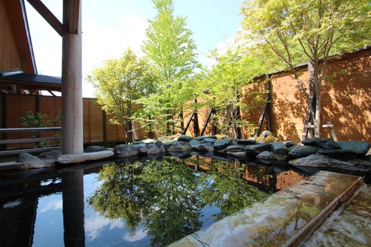 休暇村乗鞍高原の独自源泉で、地下1300mから湧き出る、カルシウム、マグネシウムを多く含む無色透明の炭酸水素塩泉。この辺りでは珍しく、ほんのり金気臭がします。サラサラのお湯は美人の湯ともいわれ、肌本来の力を引き出してくれます。