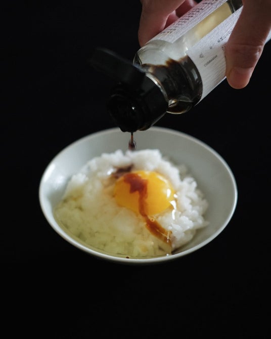 卵かけご飯セットのオリジナル出汁醤油は、昔ながらの木桶仕込みのたまり醤油に、焼津産鰹節と北海道産昆布出汁で整えた醤油です。すっきりした卵の味を引き立てる、醤油の風味と出汁のまろやかさが、卵かけご飯にぴったりに仕上げました。