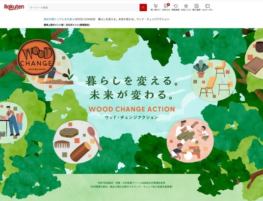 国産木材についての認知拡大や利用促進を目的とし、2020年度に始動した「WOOD CHANGE PROJECT」。今年は、「暮らしを変える。未来が変わる。ウッド・チェンジアクション」をコンセプトに、身の回りのものを木に変え、暮らしに木を取り入れるアクションや、国産木材を利用した商品を紹介する特設サイトを展開しています。