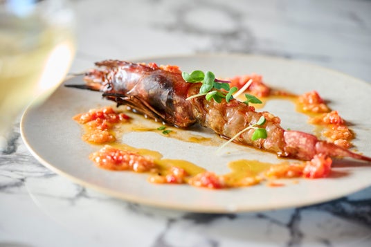 Poisson ガーリックシュリンプ炭⽕で丁寧に焼き上げた一本の海⽼をガーリックシュリンプに見立てた、シェフの独創性溢れる一⽫。ナンプラーを使用したソースを合わせ、エスニックなニュアンスで仕上げています。