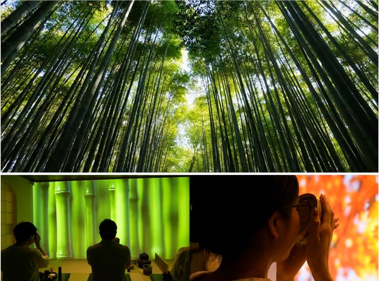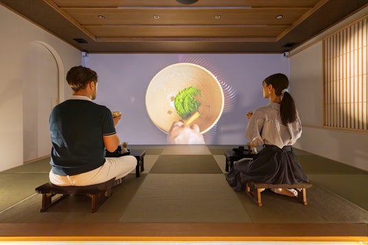四季折々の日本の自然を映し出す映像に包まれながら、自ら点てたお茶をゆったり味わう時間を提供します。
