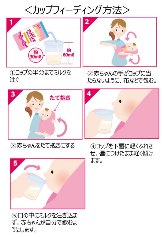 また、哺乳瓶が用意できない時は、カップでも代用可能です。