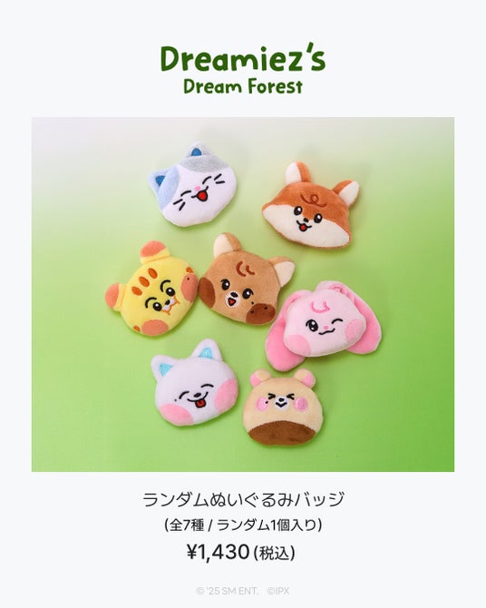 LINE発のグローバルキャラクターブランドLINE FRIENDSを展開するLINE Friends Japan株式会社(本社:東京都品川区、代表取締役社長:金成勳)は、自社のフラッグシップストア「LINE FRIENDS SQUARE SHIBUYA」にてSM ENTERTAINMENT所属のボーイズグループNCT DREAMの公式コラボキャラクター「Dreamiez(ドリーミーズ)」のポップアップを開催します。DreamiezはNCT DREAMとLINE FRIENDSが一緒に制作したキャラクターで、メンバーそれぞれの個性とムードを可愛らしく表現した7匹の動物キャラクターで構成されています。初となる今回のポップアップでは「ドミーリーズ合唱団が歌うドリーム森」をテーマに、ぬいぐるみやフォトカードホルダー、フェイスポーチ、Tシャツなどがラインナップします。そして、会場にはフォトスポットやレシート写真機(無料)も登場。