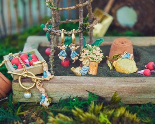 今回発売するコレクションは、ピーターラビットと仲間たちをモチーフにしたネックレス、ピアス、ピンバッジ、チャームの4つのカテゴリー。Peter Rabbit (TM) X Fable England コレクションの限定アイテムです。