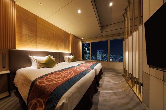 東京駅側に面する2面窓のツインベッドを配したスイートルーム。
