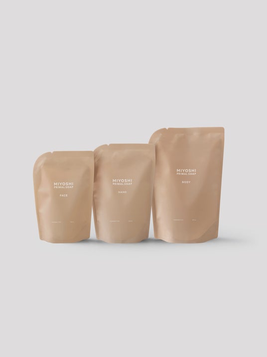 「無添加」であることは、MIYOSHIにとってあたりまえのこと。「MIYOSHI PRIMAL SOAP」はその先へ踏み出し、肌にとって本当に必要な処方を、脂肪酸の配合レベルから見直すなど、用途ごとにさらに突きつめました。30年以上変わらず支持されてきたMIYOSHIの処方に、今の視点で改良を加える。それは、変わらない信頼のために、変わりつづける姿勢です。