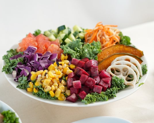 自社農園の西洋野菜を取り入れた10種野菜のボリュームサラダです。300gの野菜をたっぷりとっていただける定番サラダ。