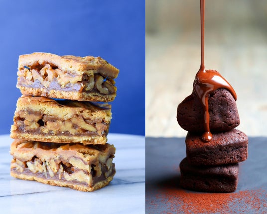 キャラメルヌガーとクルミをサクサクとしたクッキー生地に挟んだザクザク食感が特徴のスイスの伝統菓子「エンガディナー」とカカオ成分66%と70%の小麦粉不使用グルテンフリーの2種類のくちどけなめらか濃厚な「ガトーショコラ」。