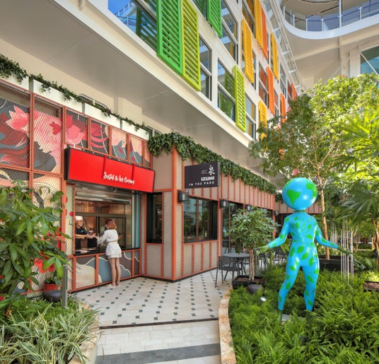 「レジェンド・オブ・ザ・シーズ」には、アイコンクラスの定番となっている人気の施設も健在です。目抜き通り「ロイヤルプロムナード」は全面ガラス張りでどこからでも大海原を見晴らすことができます。またプロムナード中央には、世界最大のキネティックアート「ザ・パール」がそびえます。空まで吹き抜けの「セントラルパーク」には30,500本の本物の草木がそよぎ、おしゃれなレストラン、シャンパンバー、寿司のテイクアウトができるカウンターなどが並びます。