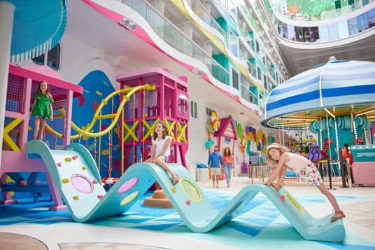 アドレナリンを増幅するスリルトップデッキのアトラクションでアドベンチャーは最高潮に。洋上最大のウォーターパーク「カテゴリー6」の6つのウォータースライダー、海上約47メートルの高さでスカイウォークとジップラインを組み合わせたアスレチック、「クラウンズ・エッジ」、ミニゴルフ「ロスト・デューンズ」、ロッククライミングの壁「アドレナリン・ピーク」などがそろっています。