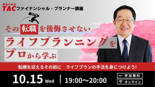 ファイナンシャル・プランナー(以下、FP)、簿記検定試験、税理士、公認会計士などの資格取得に向けた教育サービスを展開しているTAC株式会社(東京都千代田区、代表取締役:多田 敏男)は、転職や人生の転機を迎える方が知っておくべき"ライフプランニングの手法などが学べる"無料オンラインセミナーを、2025年10月15日(水)に実施します。