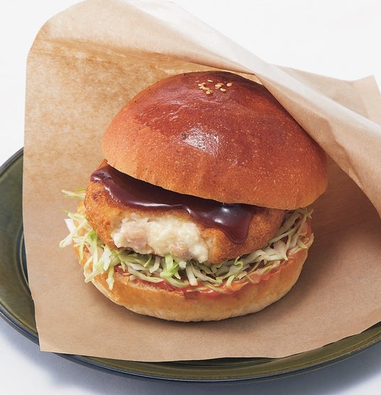 良野産小麦を使用したバンズに美瑛産ジャージー牛乳を使用したグラタンコロッケをサンド