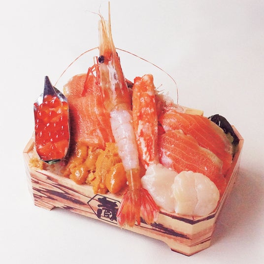 色鮮やかな「大雪サーモン」を敷き詰め、最後にほたてをトッピング!「大雪山の雪どけ」をイメージしました。