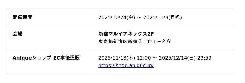 ECショップ「Anique Shop」: https://go.anique.jp/WG8cvcFUuk