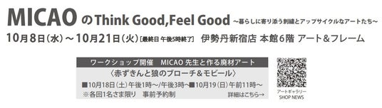 『MICAOのThink Good,Feel Good~暮らしに寄り添う刺繍とアップサイクルなアートたち~』待望の新宿伊勢丹での個展でサイン会、ワークショップも開催!10月8日(水)~21日(火)まで