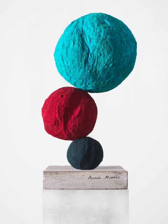 タペストリー、絵画、ドローイング、彫刻など幅広く手がけるモリスの作品の中で最もよく知られているのは、カラフルで不規則な形の球体を垂直の芯棒に通して重ねた彫刻作品「スタック」シリーズである。「スタック」は石膏や鋳造のブロンズで作られ、群青、緑色、黄土色などの鮮やかな顔料を用いて成形される。流産を経験し悲しみに沈んでいる時期に始められたこのシリーズでは、台座の上で球体が倒れてしまいそうなバランスで浮かんでいるように見え、生命の奇跡とその不安定さの両側面が表現されている。「スタック」シリーズに加えて、モリスはドローイングのようなタペストリーや直線的な造形の人物彫刻、そして画面全体に描かれた「フェイス」シリーズのように官能的な表現言語による抽象絵画を通じて女性の身体性について探求を行う。これらの作品は、女性の身体が宿す無数の様態を示すものである。