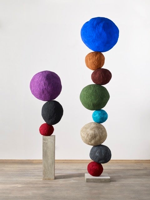 個人として国際的な評価を確立する二人。モリスは2022年フランスのシャトー・ラ・コストで開催された展覧会では、同館に設置されたフェミニズム・アーティストの巨匠ルイーズ・ブルジョワの作品《うずくまる蜘蛛》と向き合う形で展示された数々の「Stack」が多くの鑑賞者の心を惹きつけ、高く評価されています。