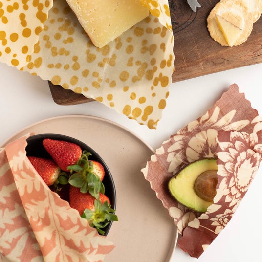 天然ワックスをしみ込ませた生地は、食品の鮮度を保ちつつ「使い捨てゼロ」に貢献します。