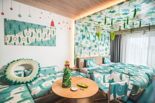 1日1室限定の「ゴーヤールーム」が期間限定でクリスマス仕様に変わります。オリジナルパジャマやゴーヤーサングラスなどのグッズで、この部屋ならではの写真や動画を撮影することができます。部屋に戻ってもゴーヤー尽くしの空間で、旅先でのクリスマスをさらに楽しめます。