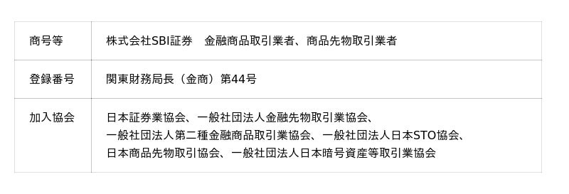 SBI証券で取り扱っている商品等へのご投資には、商品毎に所定の手数料や必要経費等をご負担いただく場合があります。また、各商品等は価格の変動等により損失が生じるおそれがあります(信用取引、先物・オプション取引、商品先物取引、外国為替保証金取引、取引所CFD(くりっく株365)、店頭CFD取引(SBI CFD)では差し入れた保証金・証拠金(元本)を上回る損失が生じるおそれがあります)。各商品等への投資に際してご負担いただく手数料等及びリスクは商品毎に異なりますので、詳細につきましては、SBI証券WEBサイトの当該商品等のページ、金融商品取引法等に係る表示又は契約締結前交付書面等をご確認ください。