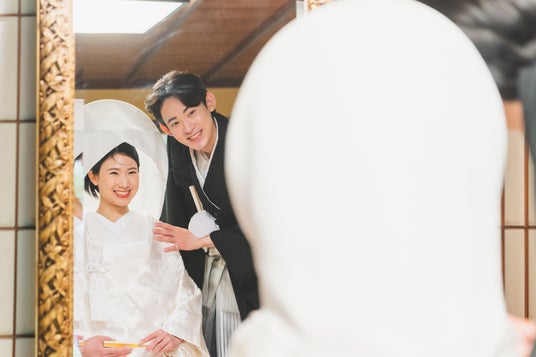白無垢と紋付袴が引き立てる、厳かで凛とした新郎新婦様