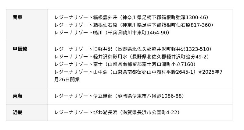 レジーナリゾート施設一覧