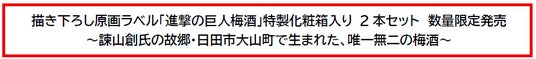 描き下ろし原画ラベル「進撃の巨人梅酒」特製化粧箱入り 2本セット 数量限定発売~諫山創氏の故郷・日田市大山町で生まれた、唯一無二の梅酒~