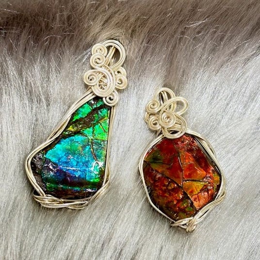 "生きた虹" アンモライト原石ジュエリー