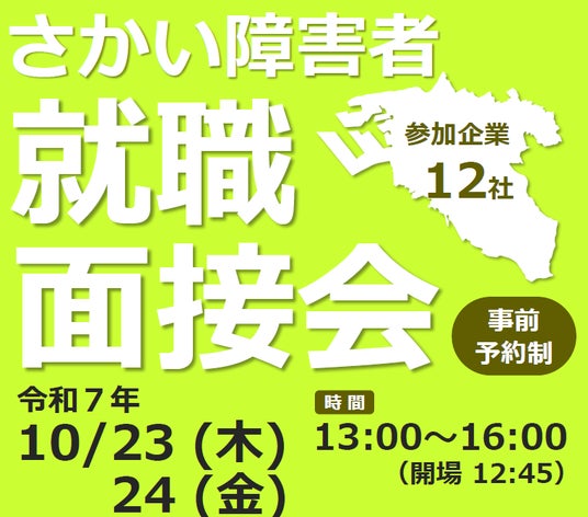 本面接会では、障害者雇用に積極的な12事業所が参加予定です。就職をめざす障害者の方々の採用面接を実施します。