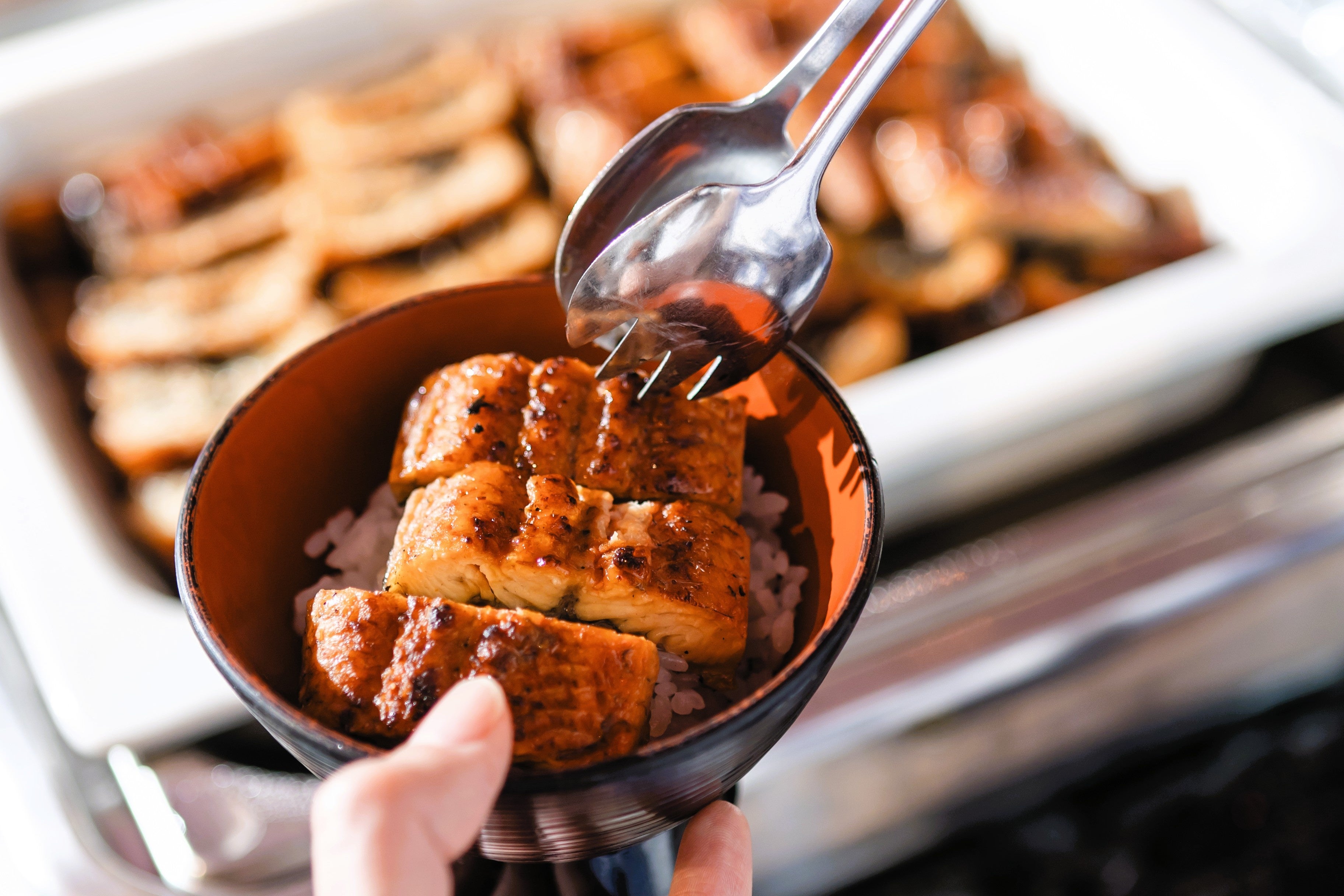 夕食ビュッフェでは浜名湖名物、鰻の蒲焼が食べ放題
