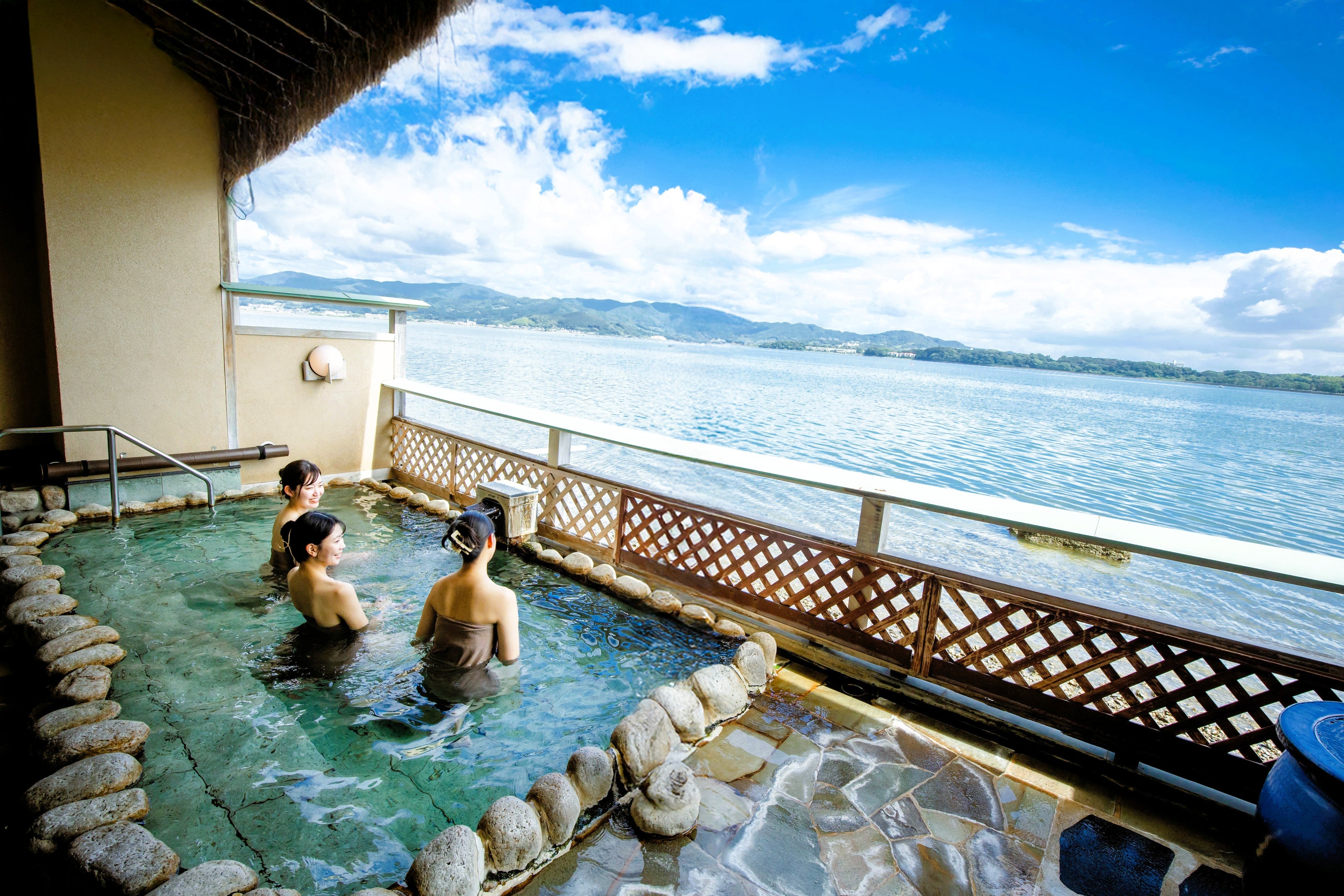 湖面すれすれ三ヶ日温泉。湖を臨むサウナ室を併設