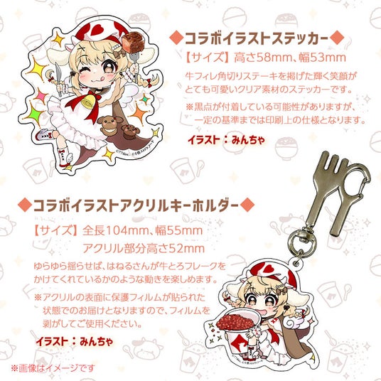 コラボグッズには本企画のために制作された描き下ろしイラストを使用!11月29日は因幡はねるさんの実食配信で一緒に良いお肉を楽しもう!