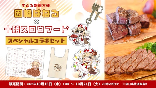 牛肉の加工・販売を行う株式会社十勝スロウフード(北海道清水町、代表取締役:山本英明)は、牛とろ親善大使を務めるVtuber「因幡はねる」さんと、スペシャルコラボセットを期間限定で販売いたします。
