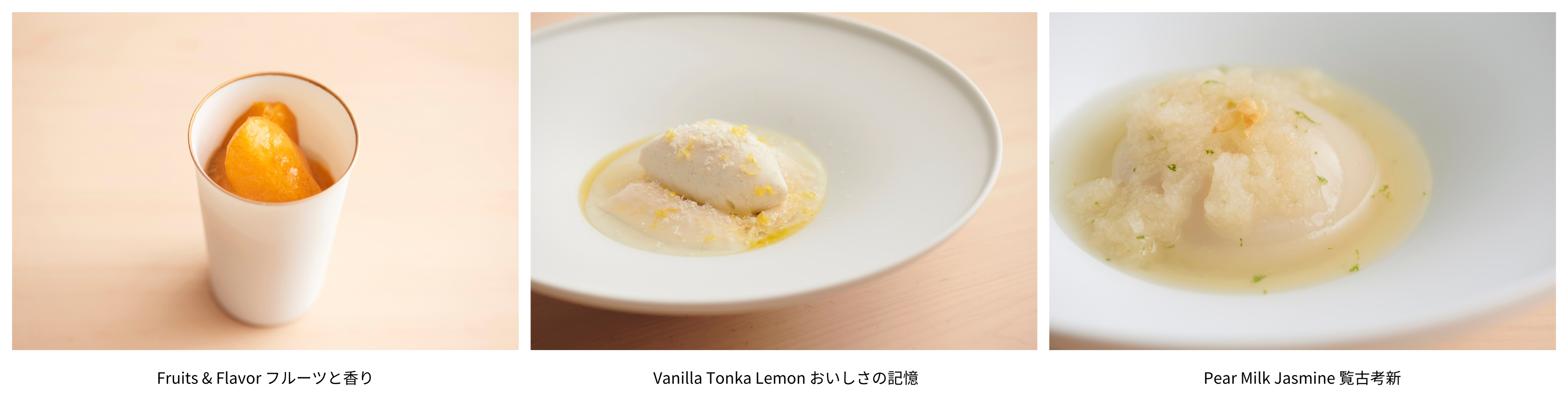*2皿目の『Vanilla Tonka Lemon おいしさの記憶』は、通常のデザートコースでも提供しています