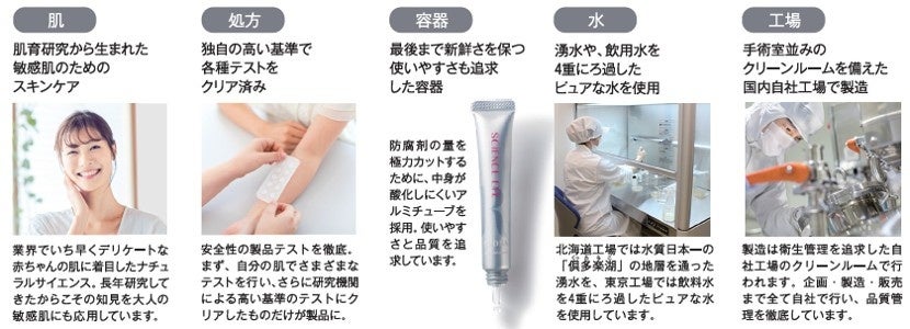 低刺激スキンケアメーカーのナチュラルサイエンスは、30年にわたり世界一デリケートな赤ちゃんの肌を研究し続けてまいりました。そんなデリケートな赤ちゃんから敏感肌の大人まで一緒に使える低刺激のスキンケアを中心に、肌本来の力を引き出すスキンケアやサプリメントなどの研究開発・販売を行っています。特に敏感肌向けブランド「ママ&キッズ」は⽪膚科医・小児科医・産婦人科医・アレルギー専門医の協力のもと開発を行い、低刺激性を実現。またその効果を確かめるため、大学病院や⽪膚科での臨床テストを実施するなど、徹底的に品質をチェックしています。