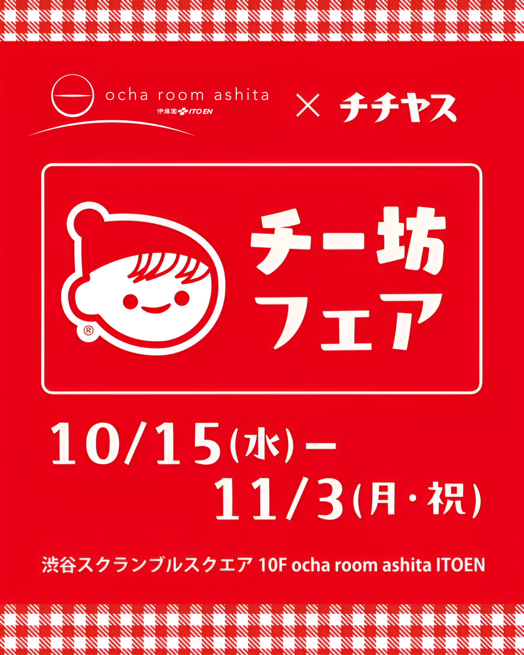 渋谷スクランブルスクエアにて「ocha room ashita ITOEN × チチヤス・チー坊フェア」を、2025年10月15日(水)~11月3日(月)で開催!
