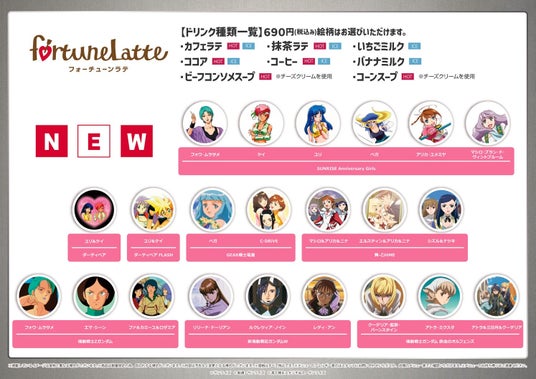また、TOKYO店舗の無料展示コーナーでは、ご来場のお客様が付箋やノートでメッセージを残せる「メッセージコーナー」を設置、TOKYO、YOKOHAMA、HAKATAの3店舗では、キービジュアルキャラをはじめとした女性キャラクター全22種の新柄ラテアートドリンクを販売します。