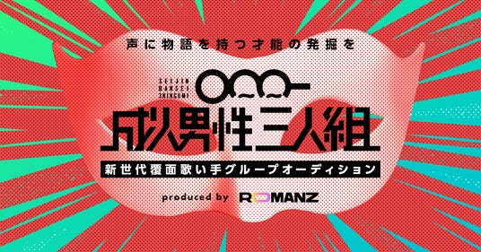 審査員を務めるのは、YouTube総再生回数1億6千万回を超え、ハイトーンボイスで人気を集める実力派歌い手グループ「成人男性三人組」です。審査にとどまらず、"伴走者"として参加者のデビューを後押しします。