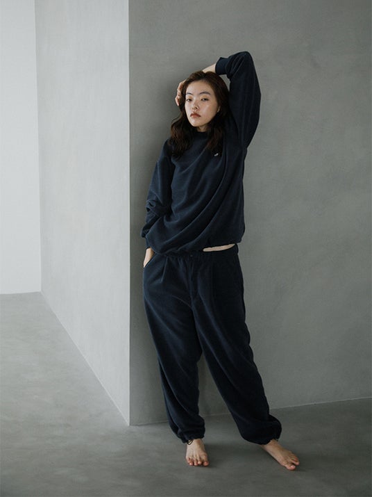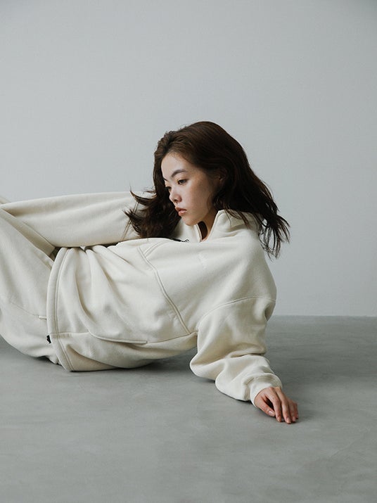 メンズからは定番のクルーネックと、新型のハーフジップ、フリースパンツの3型をラインナップ。程よくゆとりを持たせたシルエットと、クリーンな表情が魅力です。