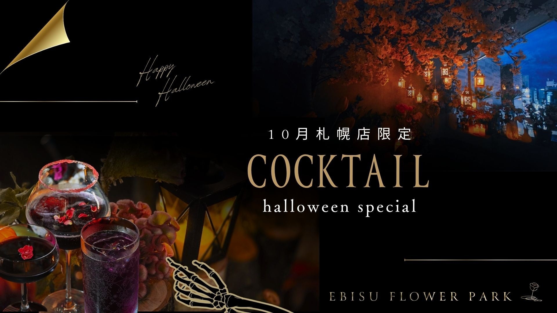 完全会員制・住所非公開のフラワーバー「EBISU FLOWER PARK札幌店」では、10月限定で"ハロウィンをテーマにした特別カクテル"を3種類ご用意しました。