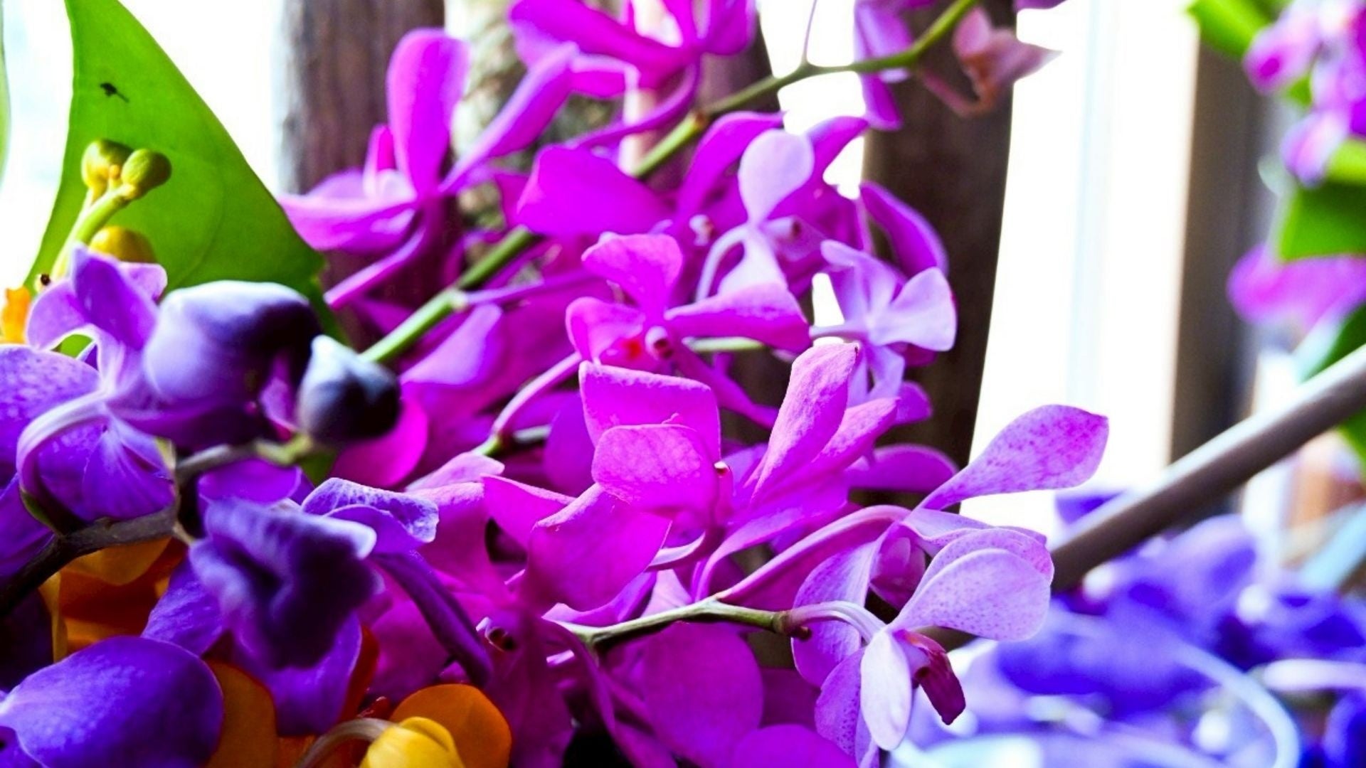 オレンジや深紫のマム(洋菊)を中心に、秋の実ものを合わせ、お花が持つ季節のあたたかさを感じられる空間に仕上げました。