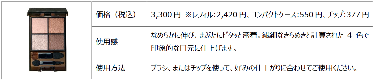 大人の肌ぐすみを払拭する"ウォーミング設計"が人気の『ミラージュアップ アイズ』から、ホリデー にぴったりの限定カラーが登場。ブラウンパレットに輝きと透け感をプラスし、洗練された華やかさと今っぽい抜け感を両立。重ねてもにごらず、透明感のある仕上がりが叶うから、多色重ねで陰影を楽しんだり、1色でヌーディに仕上げたりと、使い方も自由自在なアイカラーパレット。