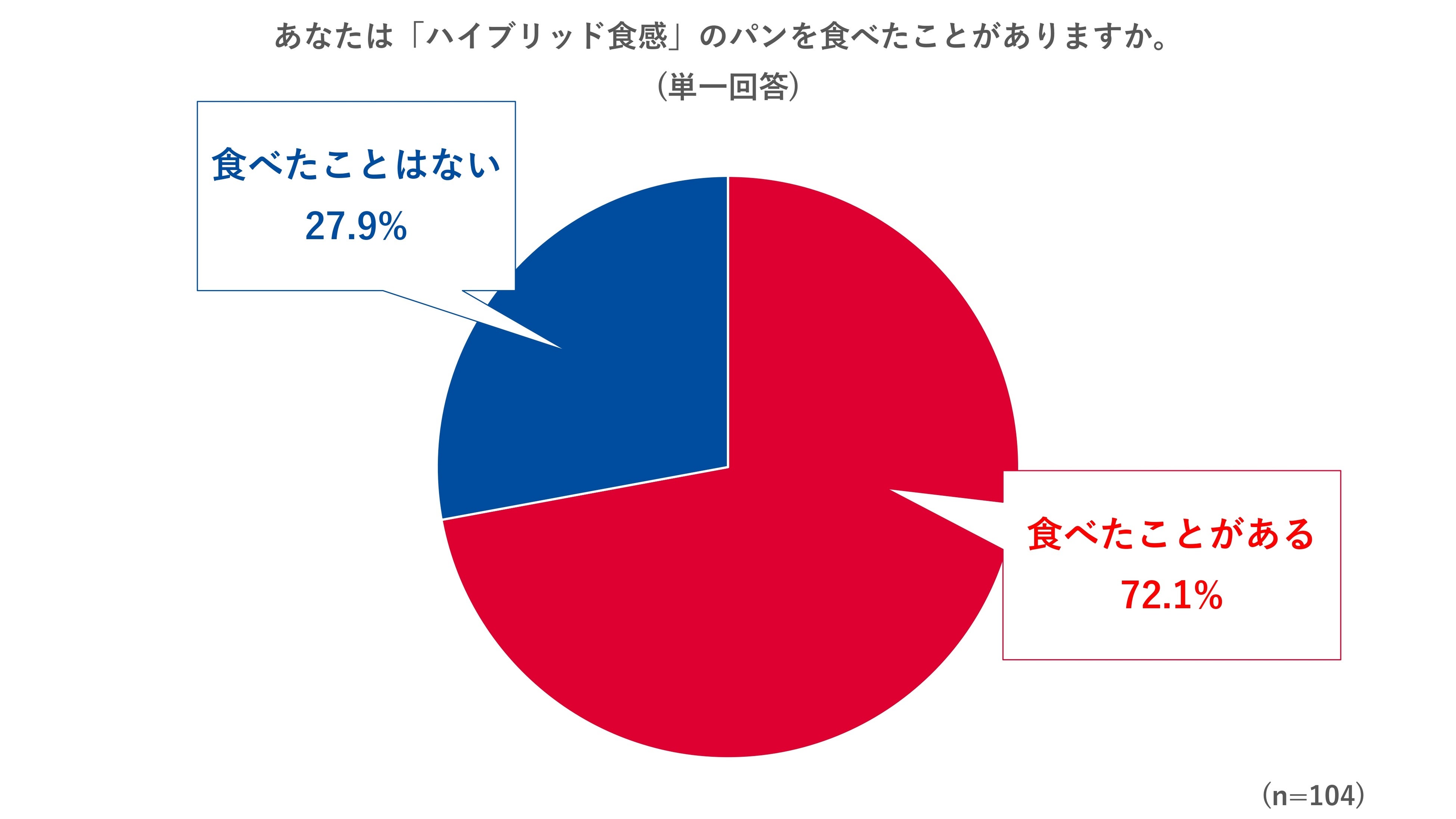 「ハイブリッド食感」グルメを食べたことがある人に、「ハイブリッド食感」のパンを食べたことがあるかを尋ねたところ、「食べたことがある」と回答した人は72.1%と、7割以上の人が喫食経験があることが判明。「ハイブリッド食感」グルメの中でも「パン」は手軽に楽しみやすいグルメであることが分かりました。