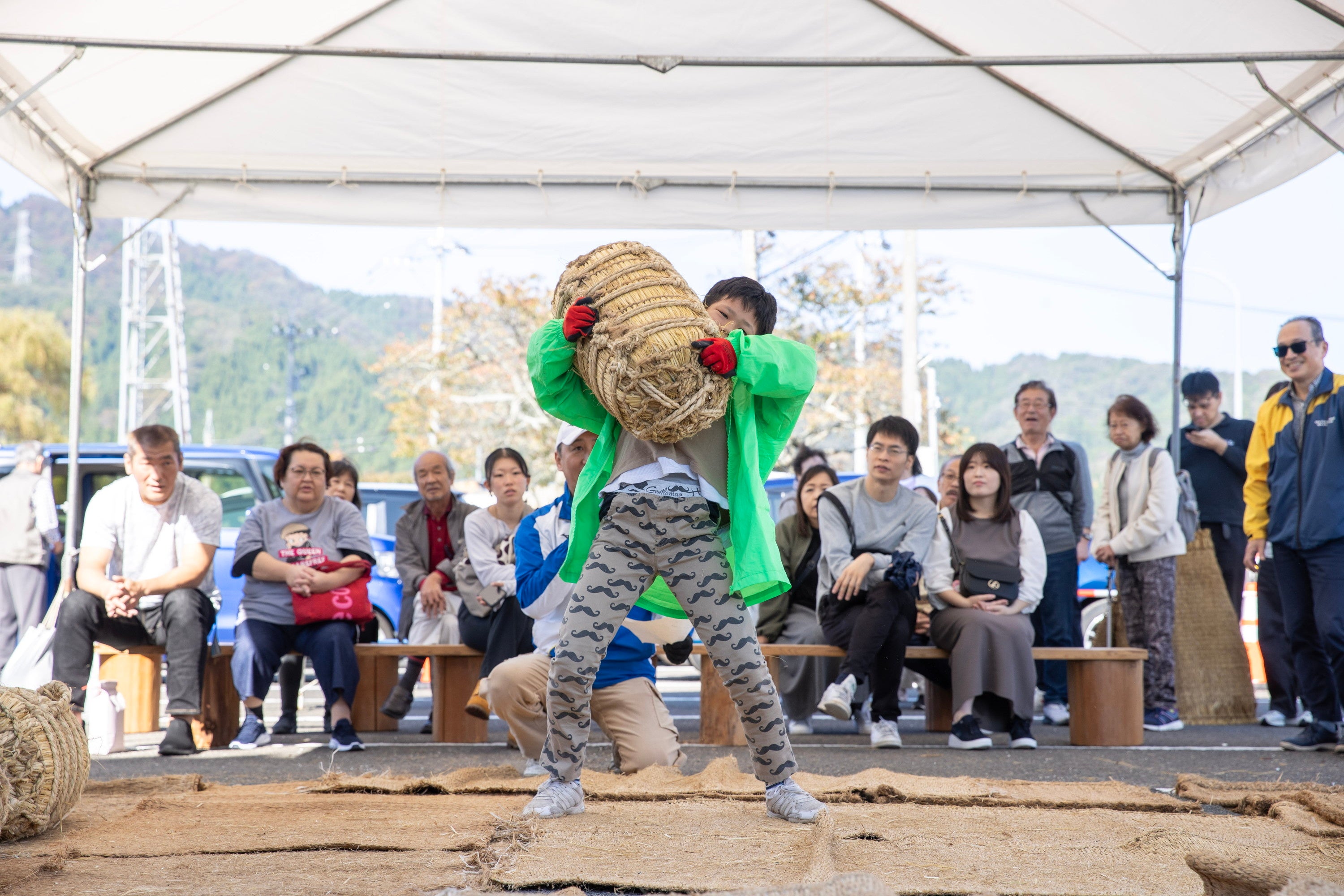 場所は池田中学校駐車場にて、男性は60kg、女性は30kg、小学生は20kgの俵担ぎに挑戦いただけます。成功者には池田町の新米をプレゼントします。(無料/予約不要:当日受付※雨天の場合は中止)