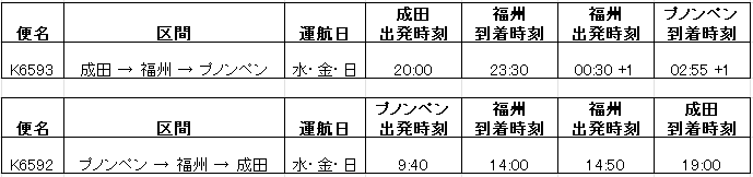 2025年10月26日より成田~福州経由~プノンペン線を開設