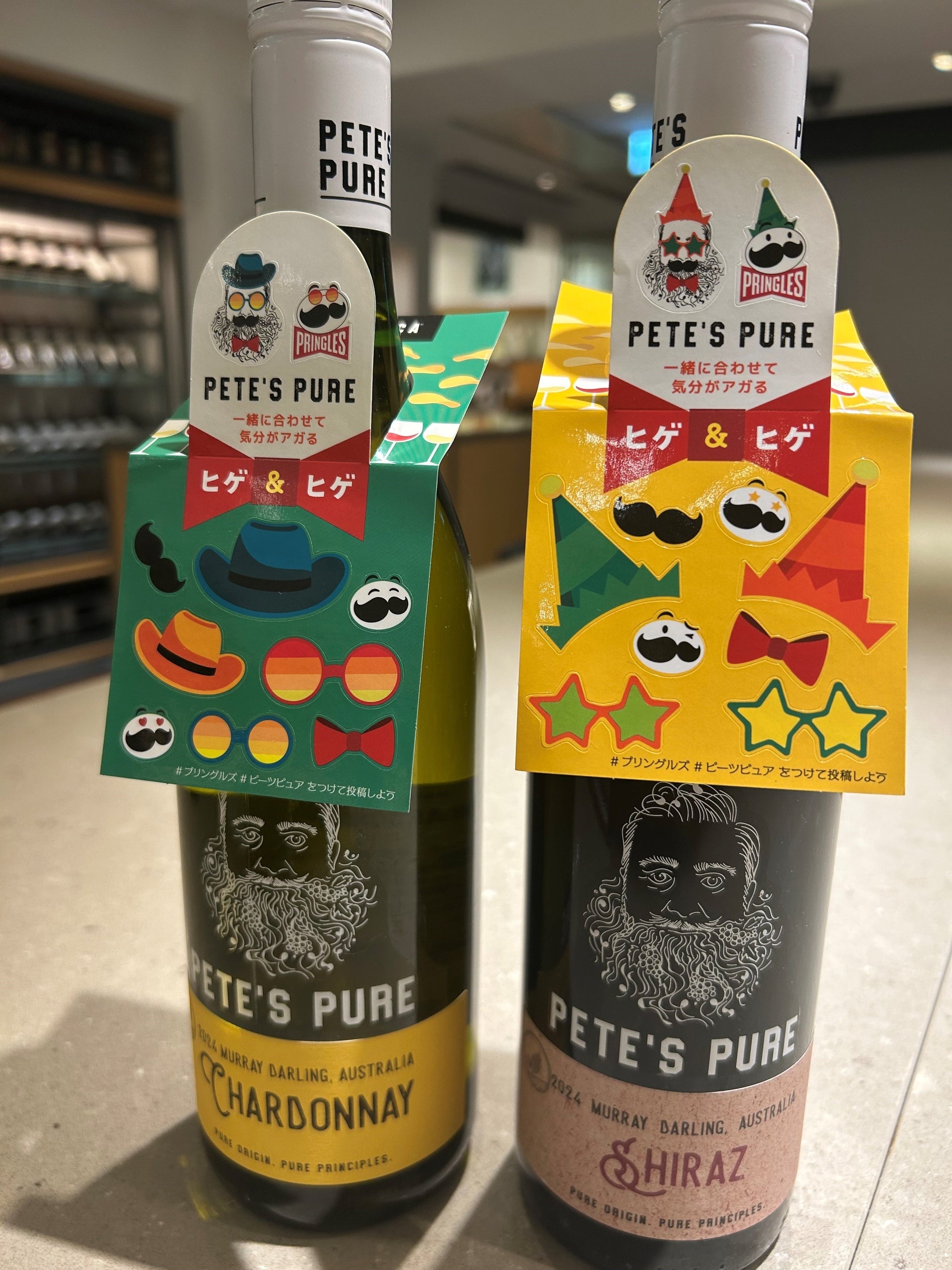 「プリングルズ」のキャラクターである「Mr.P(ミスターピー)」と、オーストラリア産ワイン「ピーツ・ピュア」のラベルに描かれている「ピートおじさん」、どちらのキャラクターも「ヒゲ」がトレードマークであることから、"ヒゲ&ヒゲ"をテーマにコラボレーションが実現。「プリングルズ」のポテトチップスとオーストラリア産ワイン「ピーツ・ピュア」の手軽でおいしいペアリングを紹介するほか、これからのパーティーシーズンや人が集まる年末年始に向けて、ビジュアル的にも楽しい、あそび心のある組み合わせを提案します。
