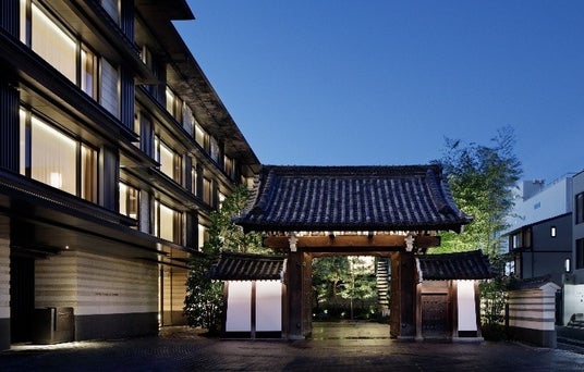 ユネスコ世界遺産の二条城の真向かいに250年以上にわたって存在した三井総領家の邸宅跡地に建ち、300年以上の歴史ある門や敷地から湧く温泉を備え、視覚だけではなく五感すべてを楽しめる空間として評価されました。