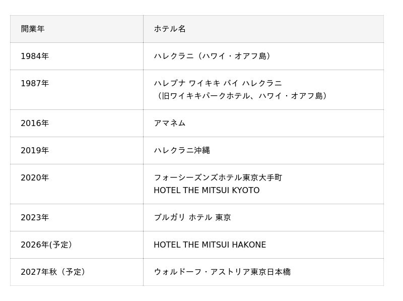 <三井不動産グループが開発・運営しているラグジュアリーホテル(開業予定含む)>