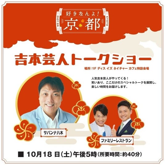 京都高島屋S.C.専門店ゾーン[T8](運営:東神開発株式会社)では、京都ゆかりの人気芸人によるスペシャルトークイベント「T8 吉本芸人トークショー」を開催します。